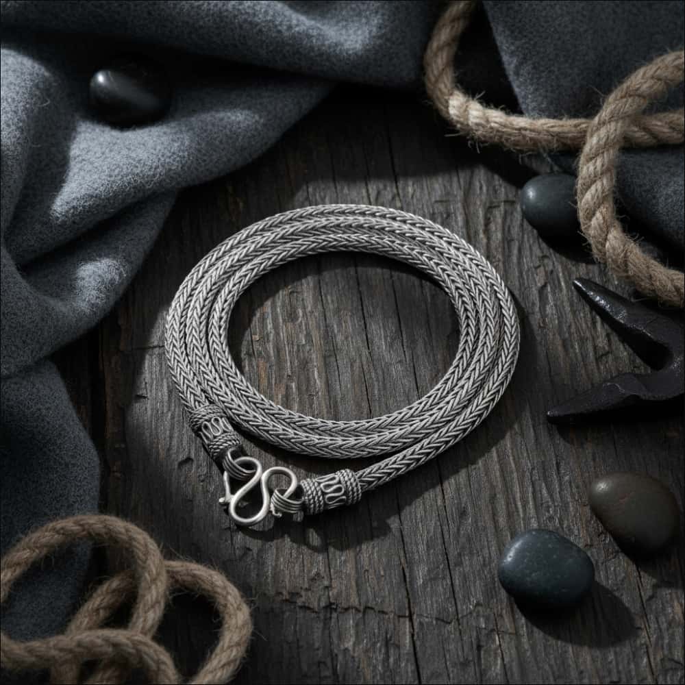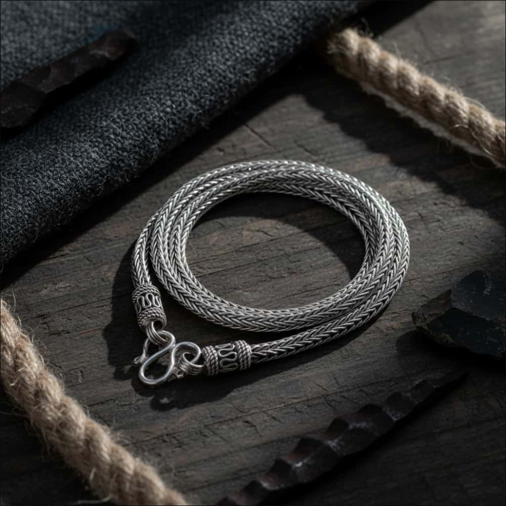 King chains also known as Byzantine chains are the most charming and elegant Viking jewels. The process of crafting is very special and as the name implies were worn by very powerful and sucessfull Vikings. Can be worn and combined with hanging pendants as necklaces or just as bracelets.
