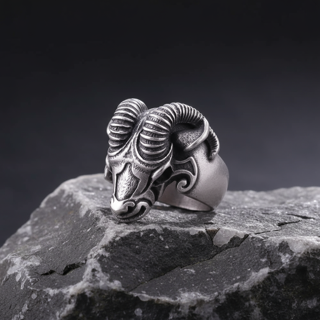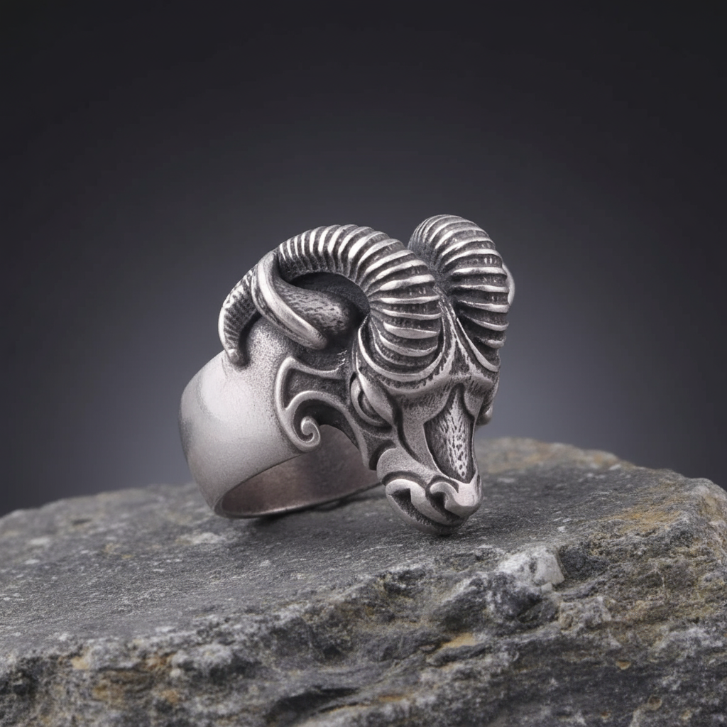 Handcrafted from silver-plated bronze, the detailed goat head design captures the fierce energy of the Norse god of thunder, symbolizing resilience and the unstoppable force of the North.