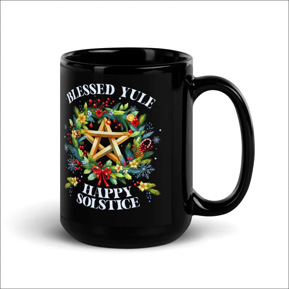 Blessed Yule Happy Solstice Mug – Black Glossy 11oz / 15oz